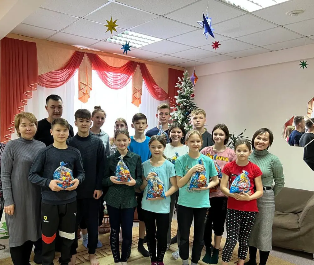 В преддверии Нового года 24.12.2022 года, коллектив школы вместе с обучающимися поздравил подшефные группы детского дома города Рудного